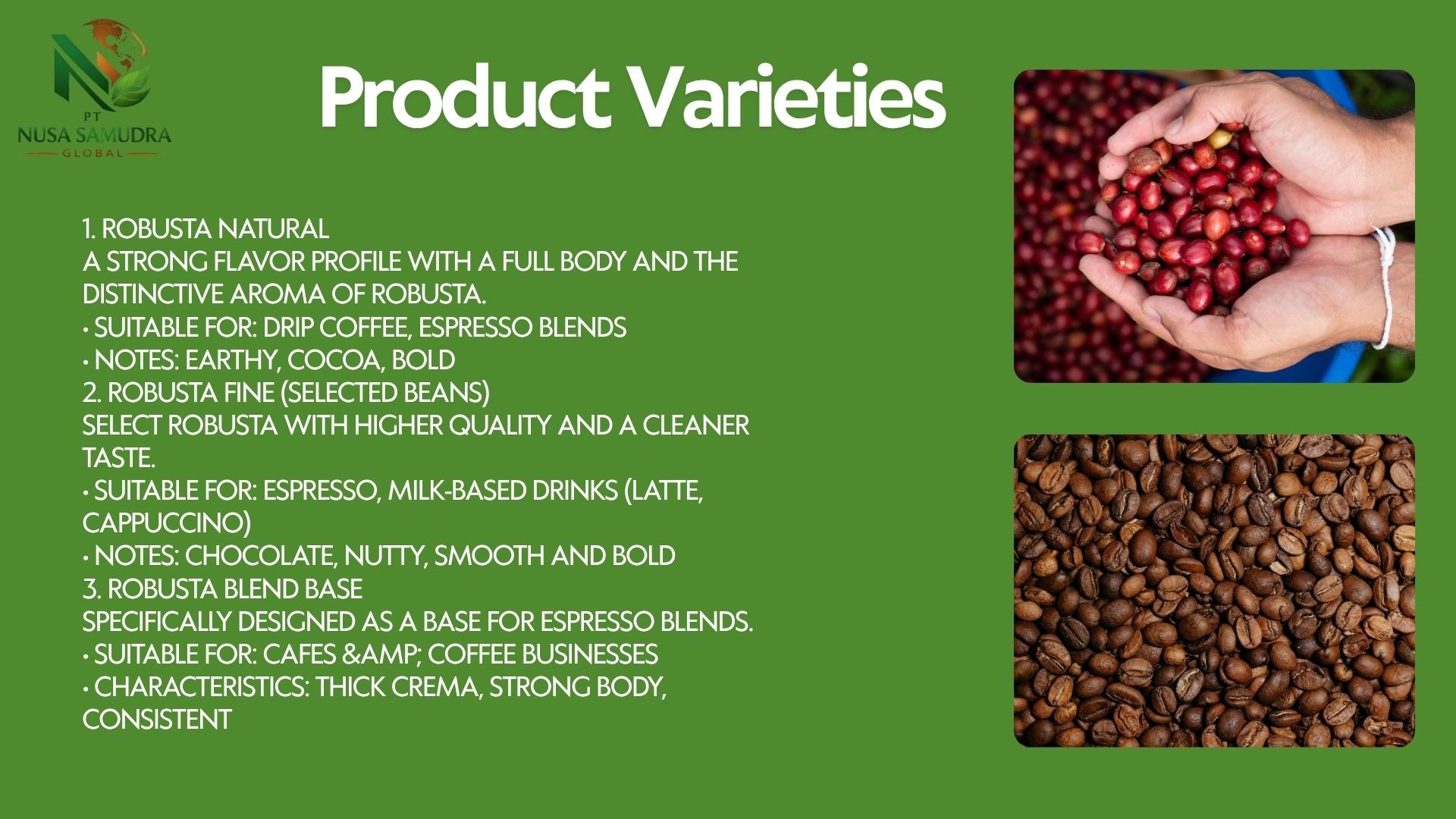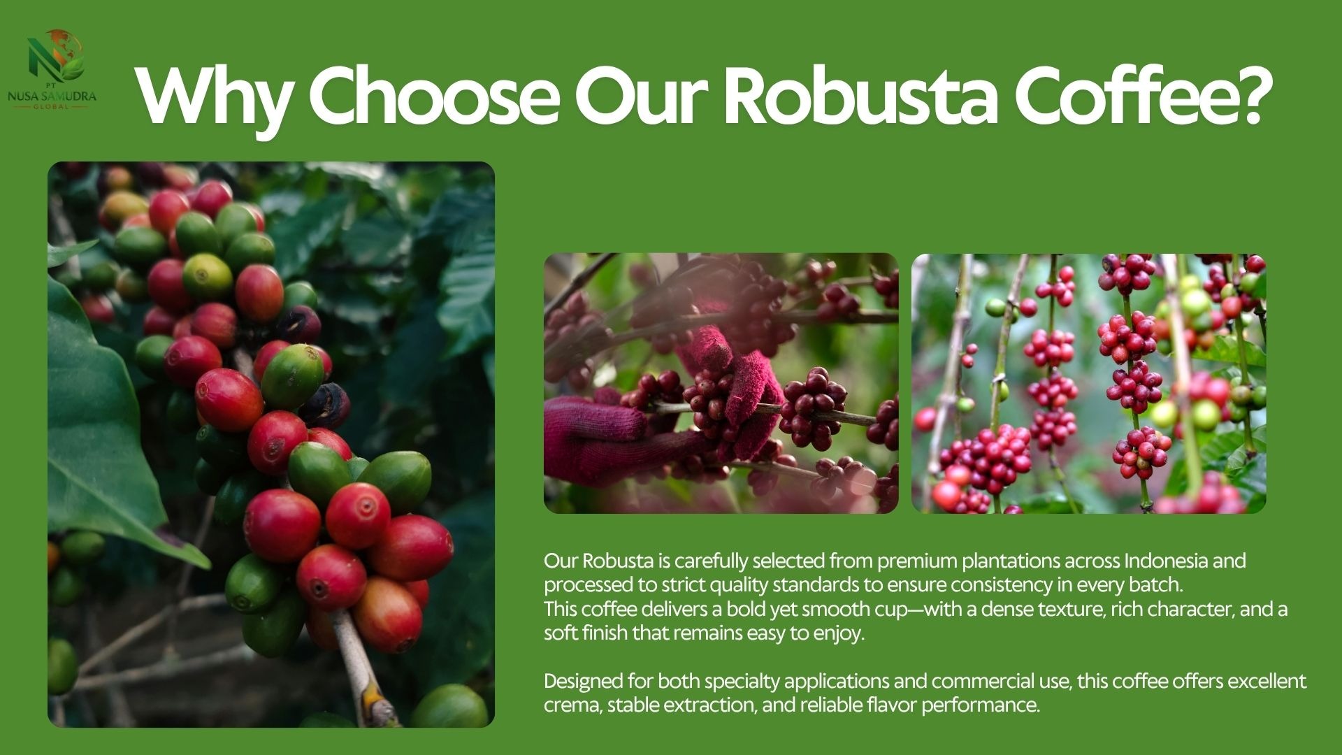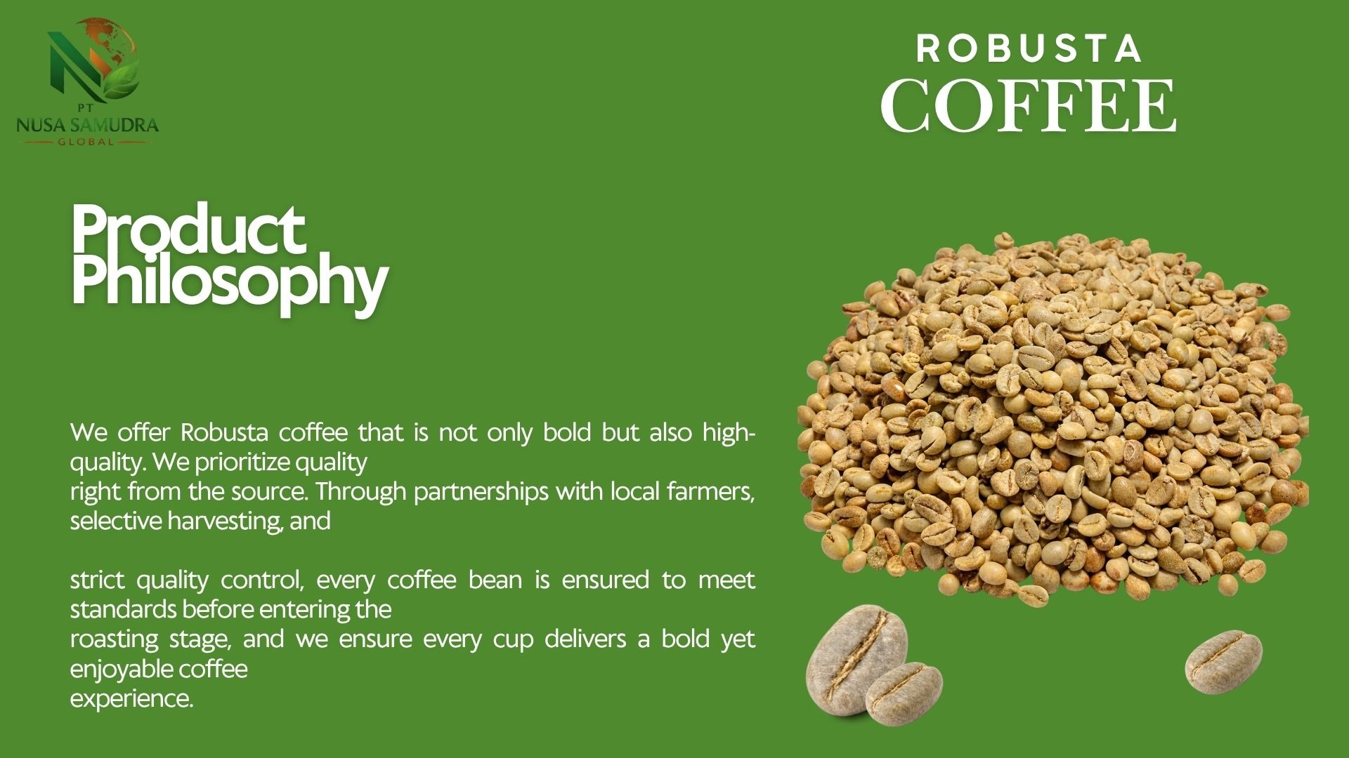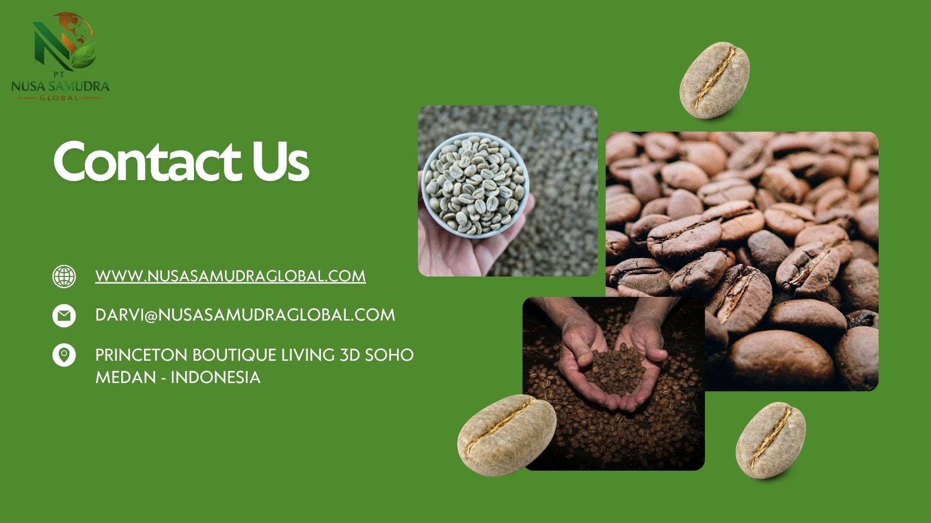 Premium Gayo Arabica coffee beans from Aceh, Indonesia, showcased in a warm and natural setting. The image highlights high-quality roasted beans with a rich texture, complemented by fresh coffee leaves and cherries, reflecting authentic origin and superior export-grade quality.